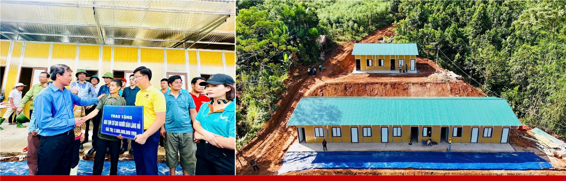 Đến sáng 22/12, sau hơn ba tháng thi công thần tốc "ba ca bốn kíp, vượt nắng thắng mưa" bởi Binh đoàn 12 (Tổng công ty Xây dựng Trường Sơn, Bộ Quốc phòng), khu tái định cư thôn Làng Nủ chính thức khánh thành, khép lại những ngày tháng đẫm nước mắt, thay vào đó là những cái ôm ấm áp, tiếng cười rộn ràng dưới những ngôi nhà mới khang trang, vững chãi giữa màu tím thơ mộng của đồi sim.