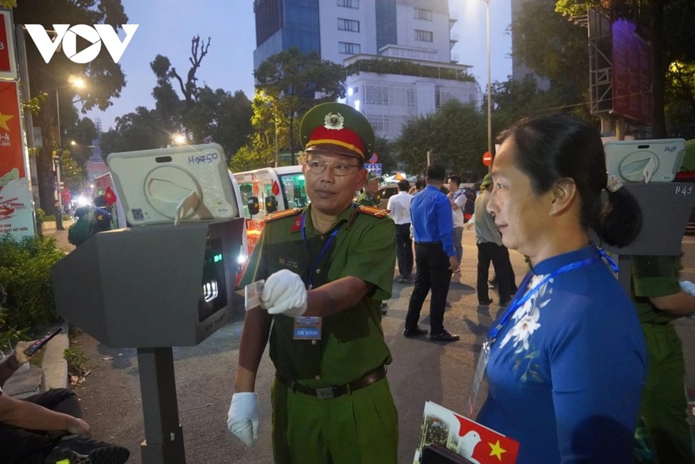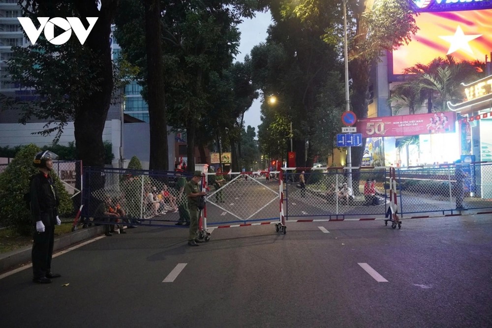 Phóng viên Kim Dung ghi nhận, tại khu vực chợ Bến Thành, biển người chờ đợi xuyên đêm để hòa mình vào không khí của ngày đại lễ. Ngoài khu vực được căng dây ngăn cách để các lực lượng tham gia phục vụ cho lễ kỷ niệm, dường như các phần đường, vỉa hè còn lại đều chật kín người ngay từ đêm qua đến sáng nay.